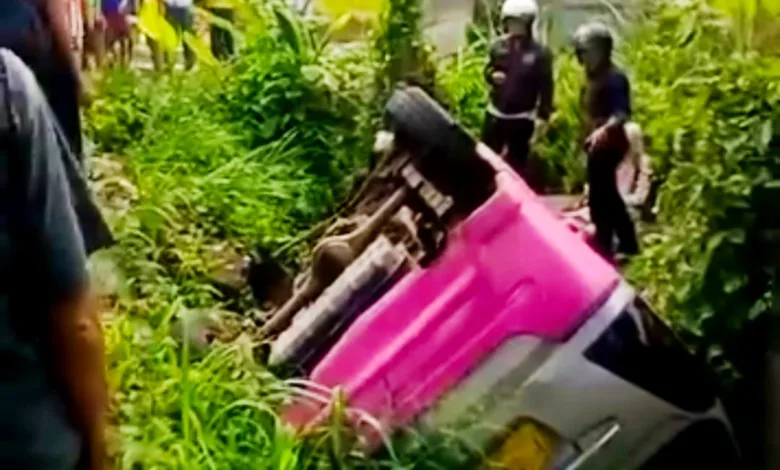 Truk Boks Tabrak Angkot Hingga Masuk Parit di Warungkondang, Lima Penumpang Luka