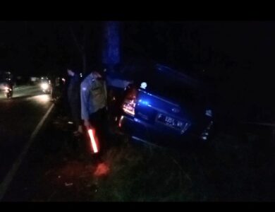 Innova Biru Nyungsep Tabrak Pohon di Pacet Setelah Sopir Diduga Mengantuk