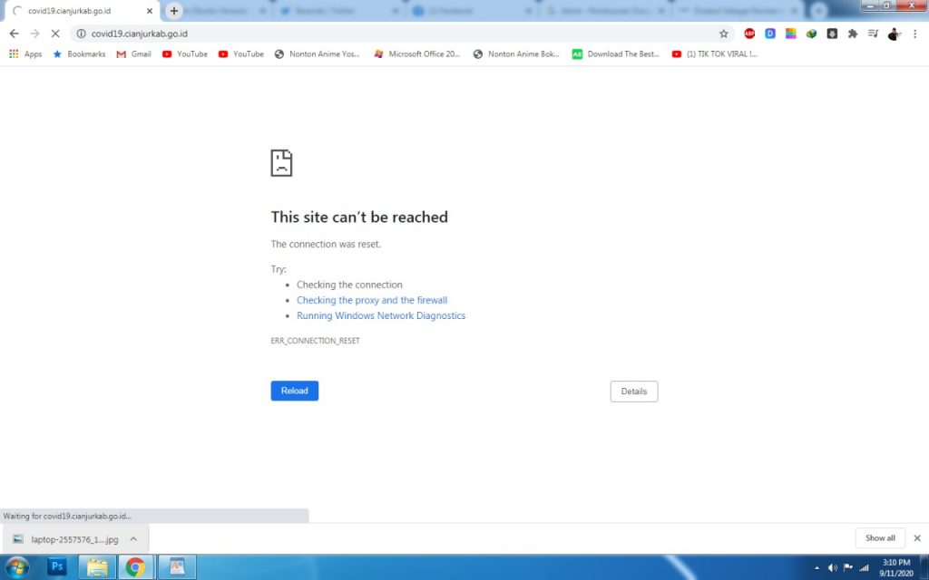 Cianjur Update pun mencoba membuka website beralamat covid19.cianjurkab.go.id tersebut. Namun, setelah menunggu proses memuat halaman, terlihat tulisan bahwa laman tidak bisa dicapai. Ketika mencoba menggunakan ponsel pun hasilnya tetap sama.