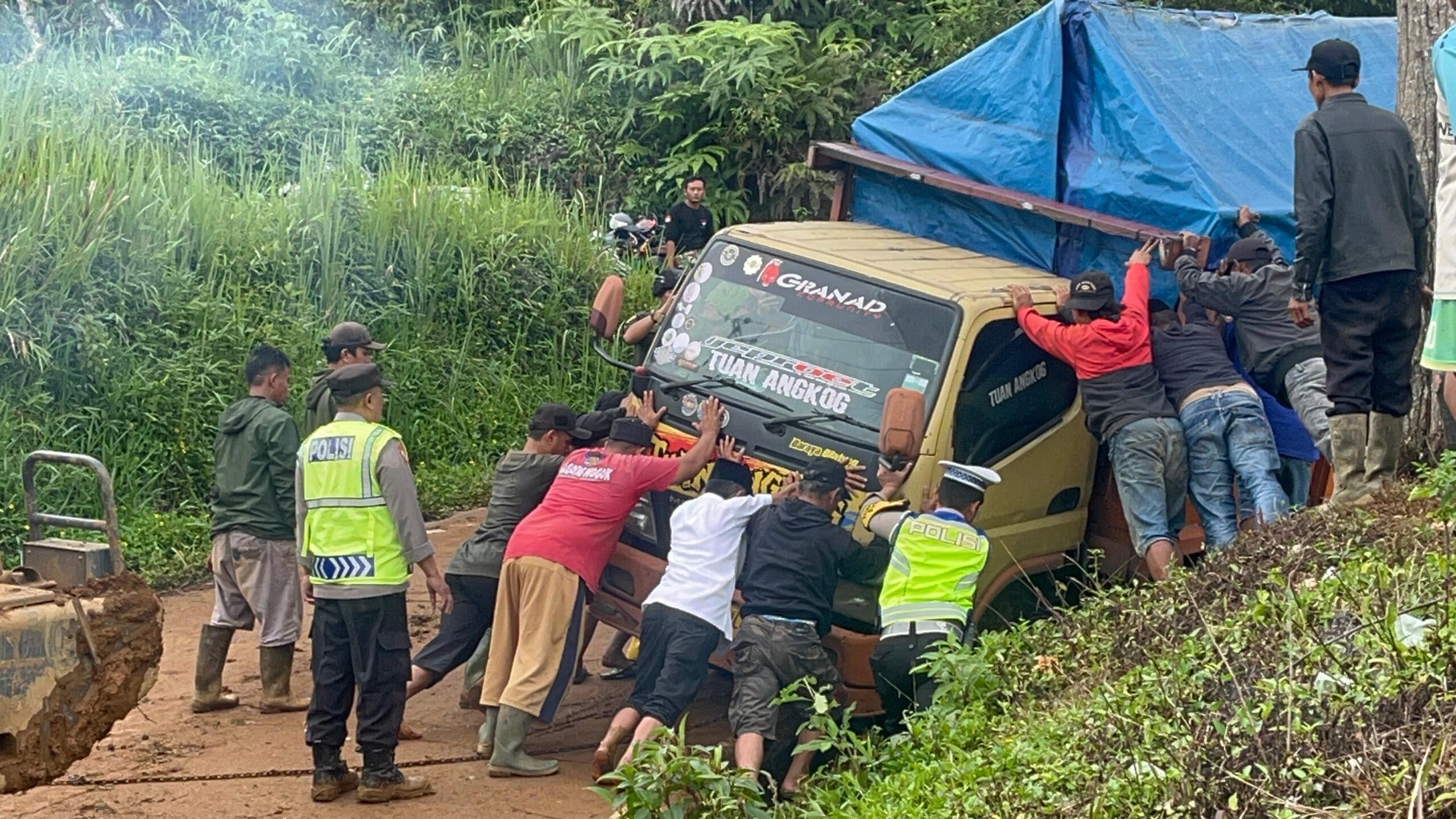 Ia menambahkan bahwa kondisi jalan yang amblas membuat kendaraan besar tidak diizinkan melintas.