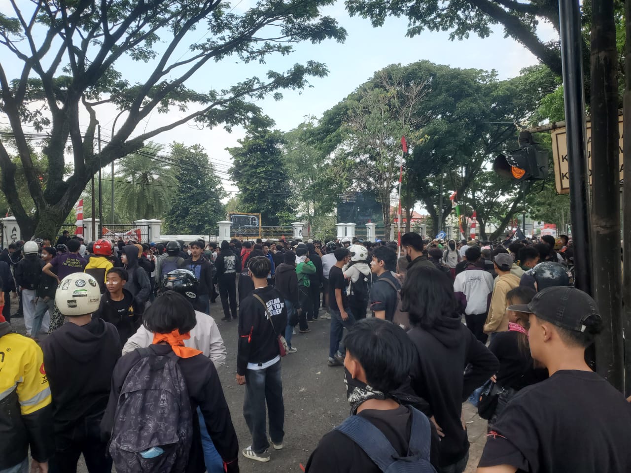 Namun, suasana mulai memanas ketika massa aksi mendesak untuk dapat masuk dan berdialog langsung dengan pimpinan dewan di dalam gedung.