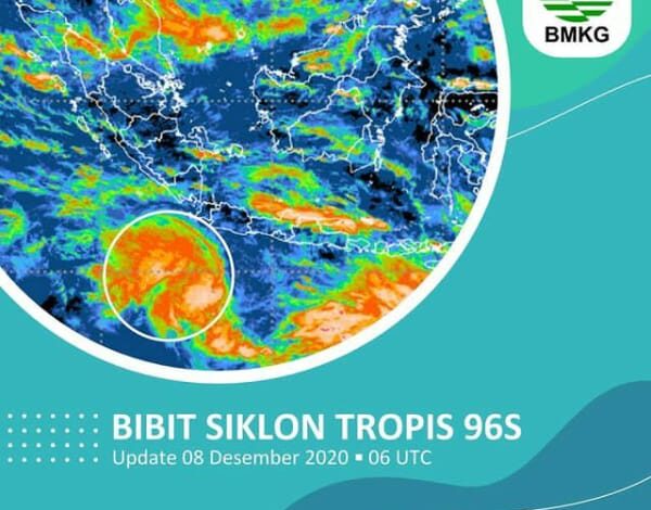 Mengutip laman bmkg.go.id, bibit siklon 96S diprakirakan mengalami peningkatan kecepatan angin yang signifikan terjadi para hari ini, Selasa (8/12/2020). Bibit siklon tropis ini berpotensi menjadi siklon tropis pada Selasa malam atau Rabu 9 Desember pagi dengan pergerakan ke arah Tenggara-Selatan menjauhi wilayah Indonesia.