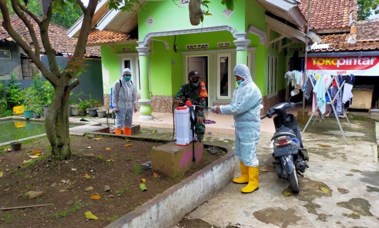 Antisipasi Penularan Covid-19, Pemdes Bojongpicung Semprot Disinfektan di Lingkungan Rumah Warga