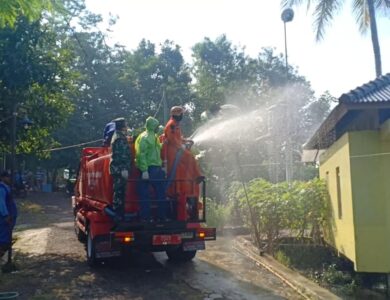 Baru Dilantik, Kades Mekarwangi Langsung Semprot Disinfektan