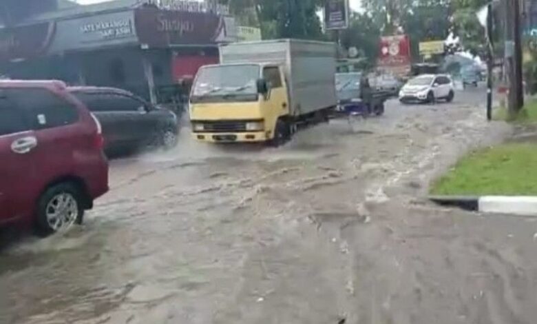 “Banjir di jalannya hampir setinggi betis orang dewasa, beberapa motor memaksa melintasi banjir dan mogok,” ujar Ahmad.