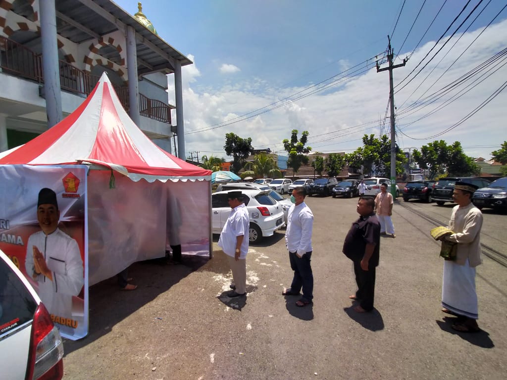 CIANJURUPDATE.COM, Cianjur – Wakil Ketua DPC Gerindra, Yoyoy Badru atau Kang YB bersama DPC Partai Gerindra Cianjur membagikan masker gratis di Masjid Abdullah bin Nuh Cianjur, Jumat (27/3/2020). Ia juga menyediakan bilik disinfektan bagi jamaah yang akan memasuki masjid.