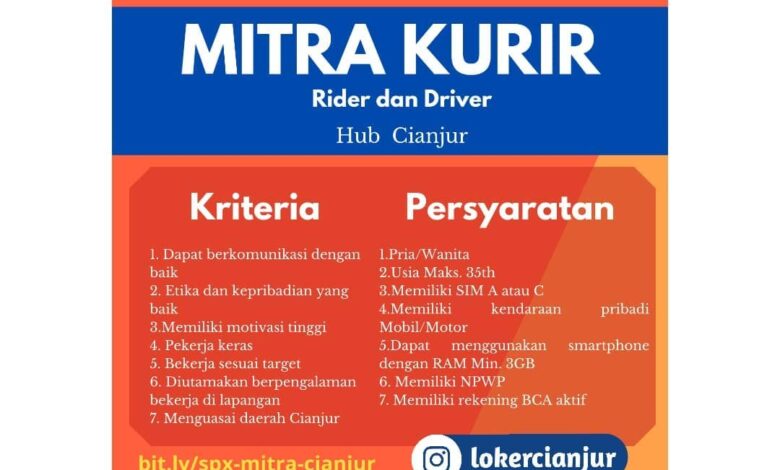 bit.ly/spx-mitra-cianjur Lowongan Kerja Kurir Shopee Express Terbaru