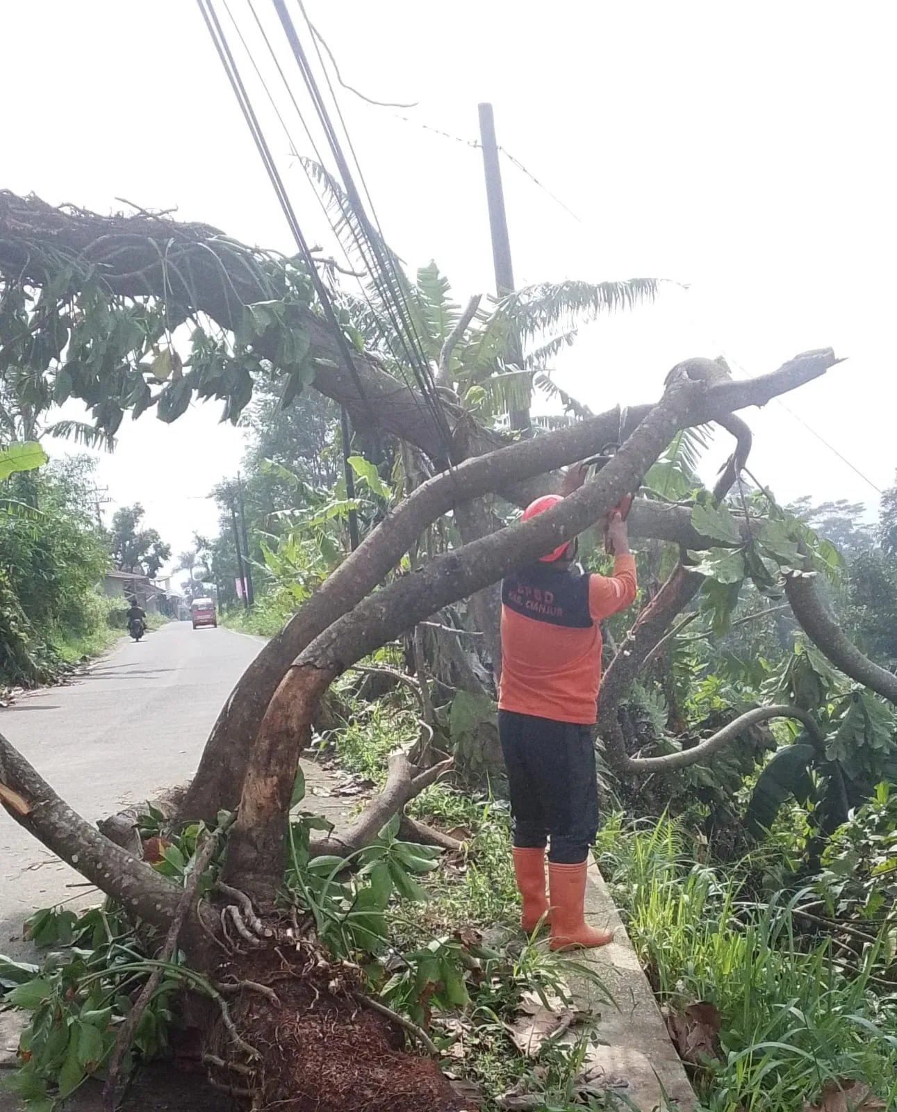 CIANJURUPDATE.COM – Cuaca ekstrem berupa angin kencang dilaporkan menyapu 11 kecamatan di wilayah Kabupaten Cianjur selama dua hari berturut-turut. Fenomena alam ini memicu belasan insiden pohon tumbang yang menimpa hunian warga hingga melumpuhkan akses transportasi di sejumlah titik.