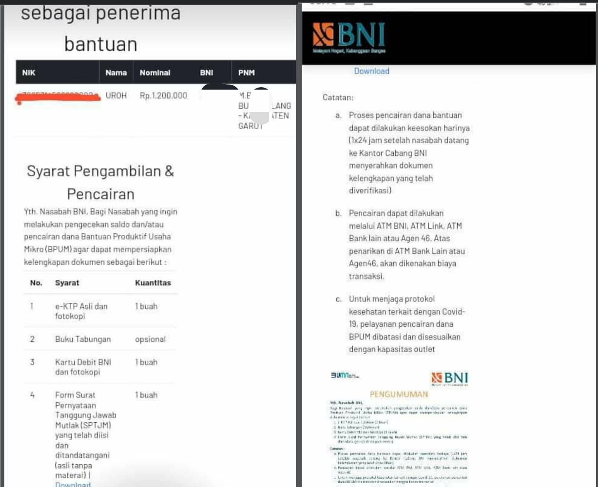 Hal ini membantu masyarakat pelaku UMKM untuk mencari tahu apakah ia menerima bantuan atau tidak tanpa harus datang ke Bank BNI.