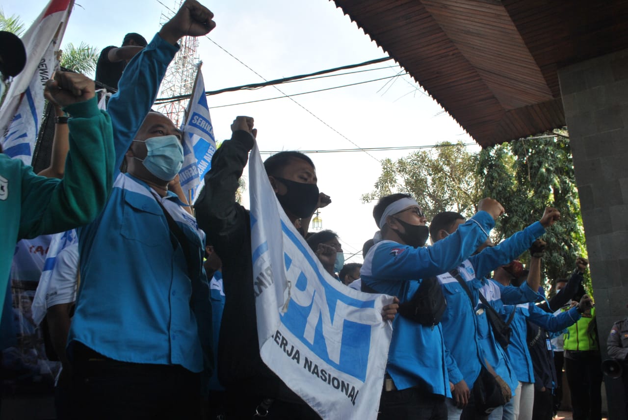 Buntut PHK Sepihak, Massa SPN Cianjur Demo di Pendopo