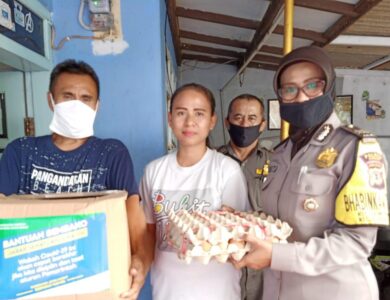 Polres Cianjur Kawal Pembagian Bantuan Sembako Pemprov Jabar