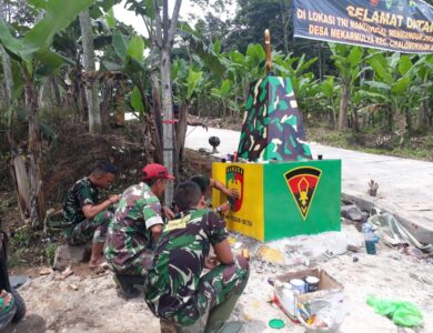 Satgas TMMD ke-107 Bikin Tugu di Mekarmulya