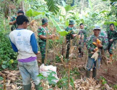 Satgas TMMD Ikut Panen Jagung Bareng Masyarakat Cikalongkulon