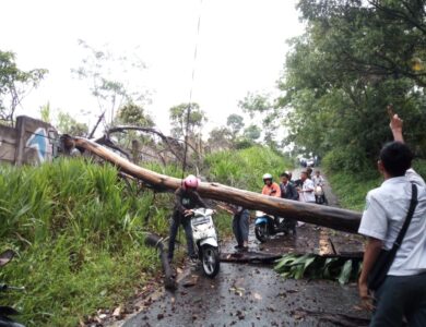 Pohon di Cianjur Bertumbangan, Lihat Cara Pemotor Ini Lewati Jalan