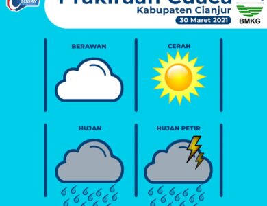 -    Prakiraan Cuaca Cianjur, Kamis 25 Maret 2021: Waspada, Hari Ini Hujan Disertai Petir dengan Suhu 32 Derajat CelsiusCIANJURUPDATE.COM, Cianjur – Berikut prakiraan cuaca Badan Meteorologi, Klimatologi, dan Geofisika (BMKG) untuk wilayah Kabupaten Cianjur Kamis (25/3/2021). Pagi hari,… Baca Selengkapnya »