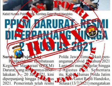 CIANJURUPDATE.COM – Beredar kabar bahwa Pemberlakuan Pembatasan Kegiatan Masyarakat (PPKM) darurat akan diperpanjang hingga 2 Agustus 2021 nanti. Polda Jatim…