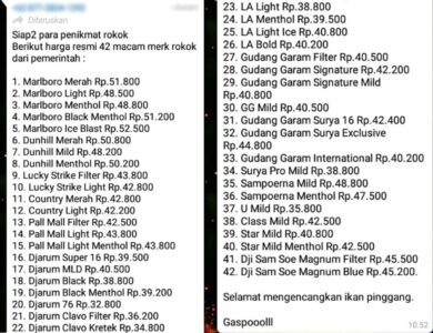 Viral Daftar Harga Rokok Naik, Produsen: Hoaks!