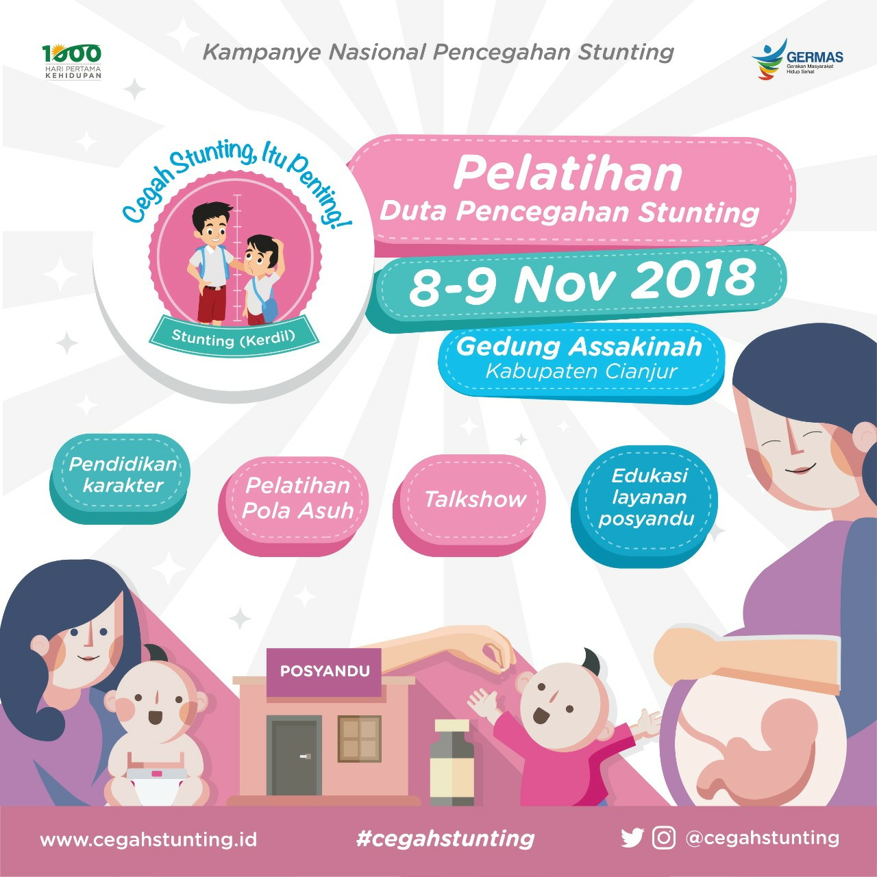 CIANJURToday– Sebanyak 500 peserta yang terdiri dari tenaga kesehatan dan kader posyandu di Kabupaten Cianjur, diikut sertakan pelatihan Duta Pencegahan Stunting, selama dua hari 8-9 November 2018.