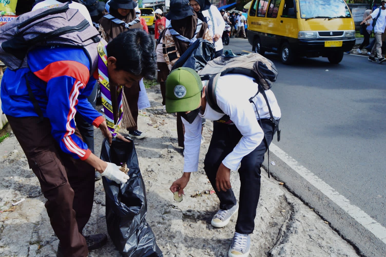 “Jadi aksi di pagi ini kita start nya dari jalan protokol Cipanas dan di bagi menjadi dua kompi sekaligus menyebarkan sebuah semboyan himbauan tentang sampah,” kata dia.