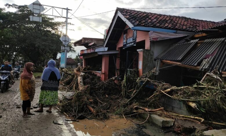 Cidaun Diterjang Banjir dan Longsor, Tiga Rumah Terbawa, Puluhan Warga Terdampak