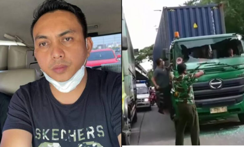 Dalam video itu, terlihat seorang pria berbadan tegap turun dari Pajero dan memukul sopir truk kontainer. Bahkan dia memukul kaca truk dengan tongkat hingga pecah.