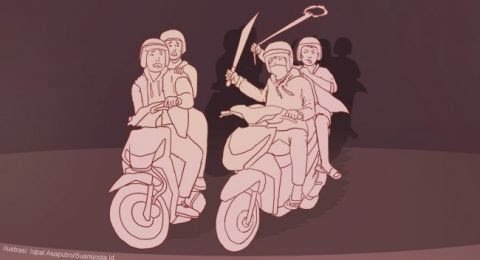 Para pelaku langsung membacok korban yang ketika itu sedang berboncengan dengan rekannya, Sujud Triwibowo.