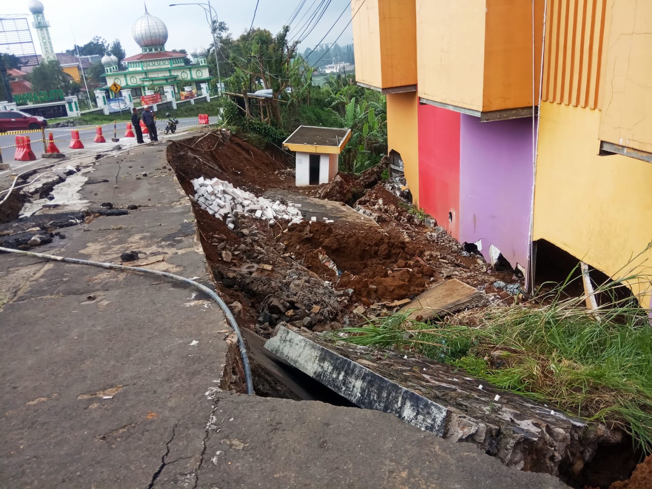 Namun pengendara mobil dan pengendara motor dari arah Cianjur atau sebaliknya harus berhati hati. Hal ini karena jalan sedikit menyempit akibat adanya retakan.