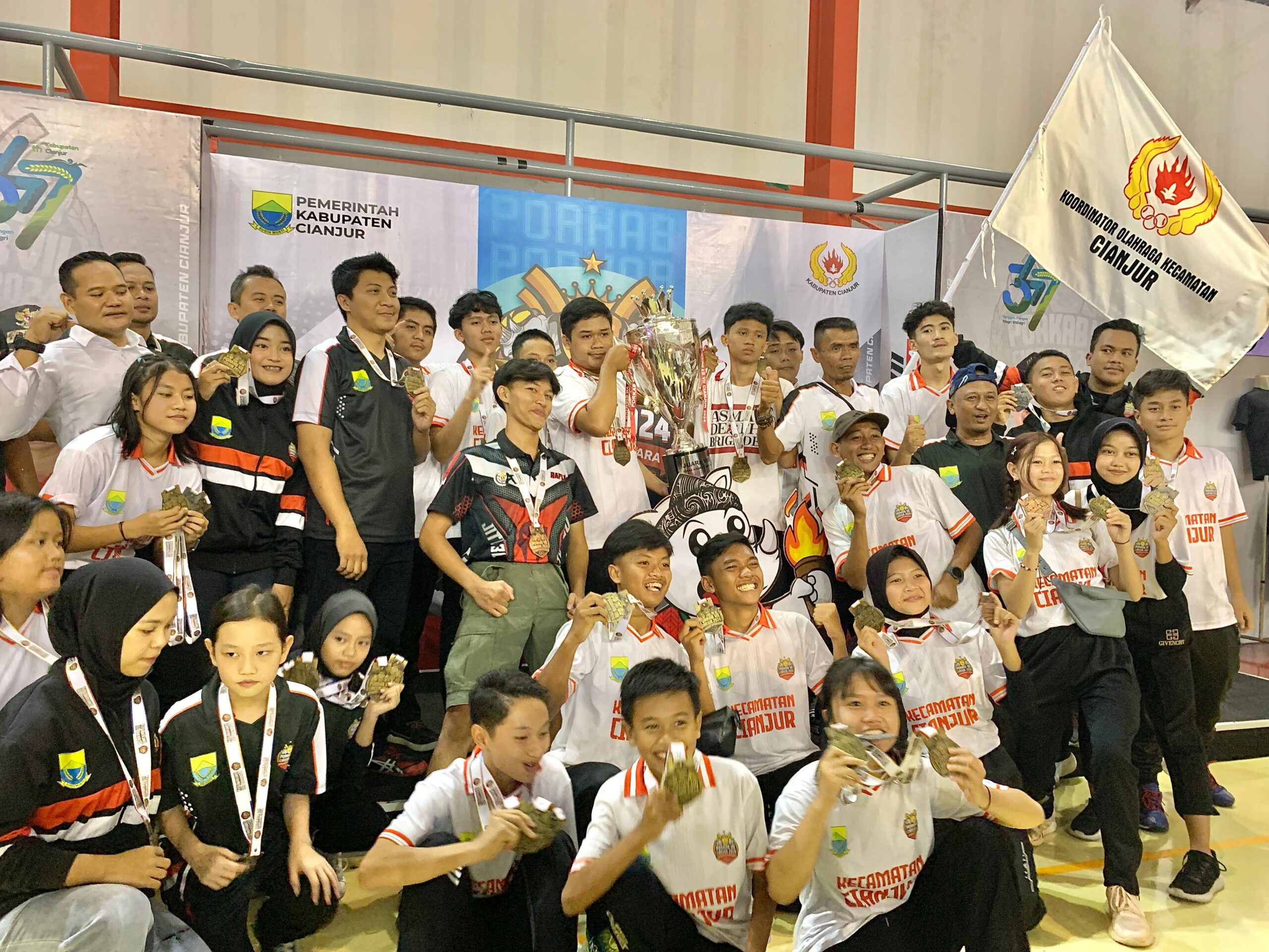 Kesuksesan acara semakin lengkap saat penyerahan piala juara umum yang berhasil diraih oleh kontingen Kecamatan Cianjur.