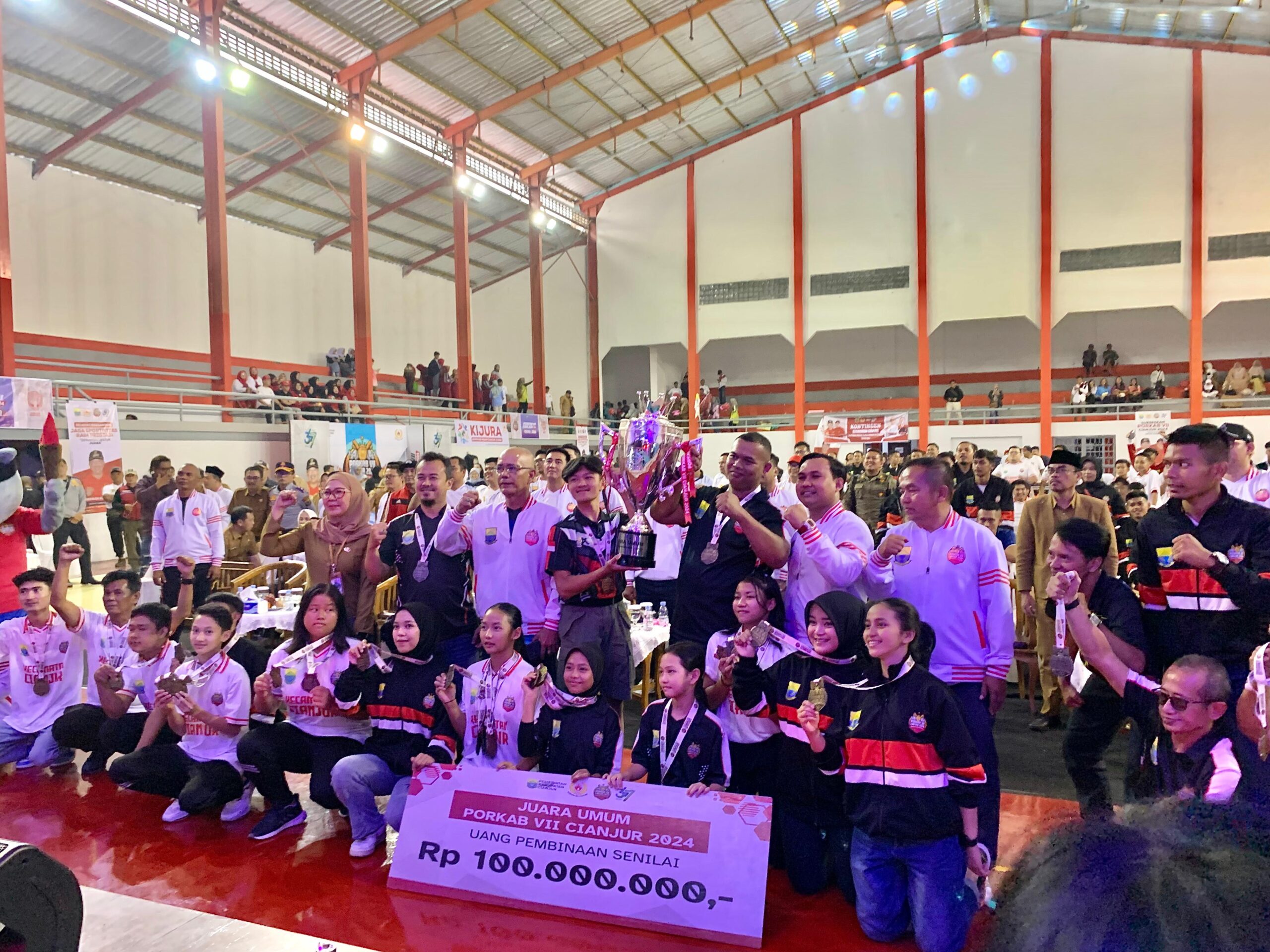 “Alhamdulillah Porkab ke tujuh akhirnya terlaksana dengan sangat aman, baik serta menjunjung sportivitas, dan alhamdulillah Kecamatan Cianjur berhasil menjadi juara umum,” kata dia.