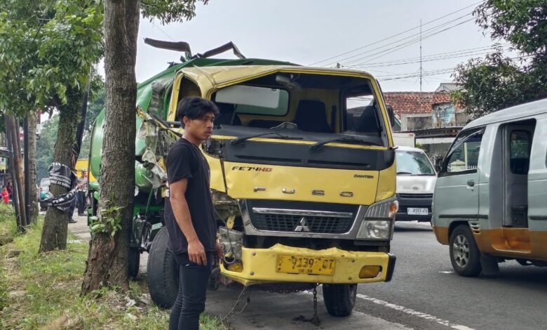 Hindari Motor, Truk Tangki Air Hantam Fuso di Jalan Raya Sukabumi-Cianjur