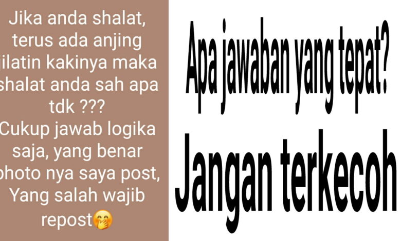 CIANJURUPDATE.COM – Mencari jawaban teka-teki jika anda sholat, terus ada anjing jilatin kaki maka shalat anda sah apa tdk? Cukup jawab logika saja, yang benar photo nya saya post!