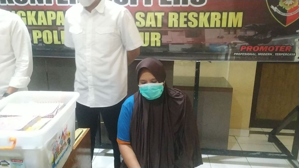 Memasuki Desember 2020, wajah AN (46), tersangka penipuan investasi paket lebaran bodong yang berhasil ditangkap Sat Reskrim Polres Cianjur. AN beserta barang bukti kejahatannya diperlihatkan pada konferensi pers yang digelar di Mapolres Cianjur, Rabu (2/12/2020).