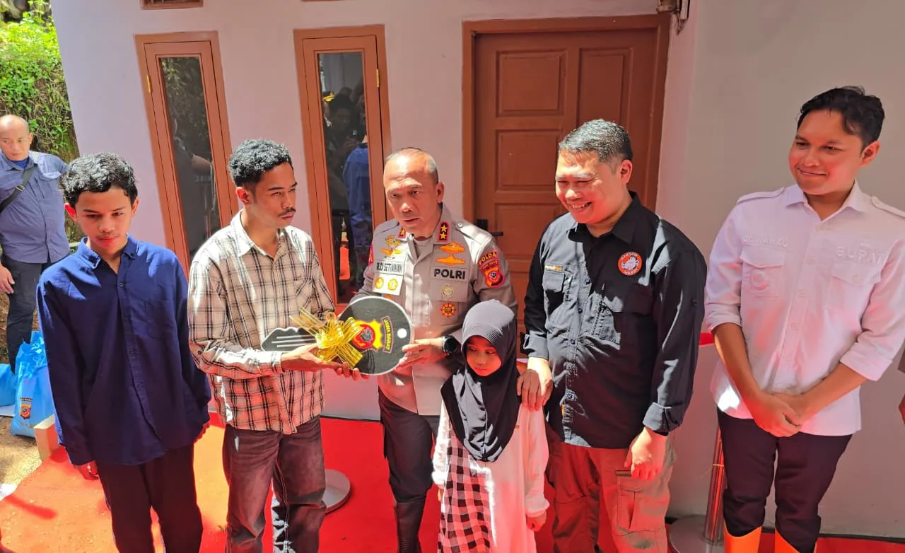 “Alhamdulillah, kami dari Polda Jabar bekerja sama dengan Polres Cianjur, komunitas sosial Bagong Mogok, dan Pemkab Cianjur hari ini menyerahkan rumah yang telah kita bangun untuk keluarga almarhum Wahyu,” kata Kapolda kepada wartawan seusai penyerahan bantuan.