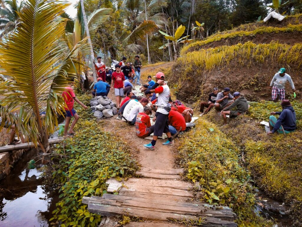 Usman menjelaskan, untuk menghemat dana, pihaknya menggunakan batu dari sungai. Segala keterbatasan itu membuat karang taruna berinisatif untuk menggunakan alat dan bahan yang ada di kampung itu.