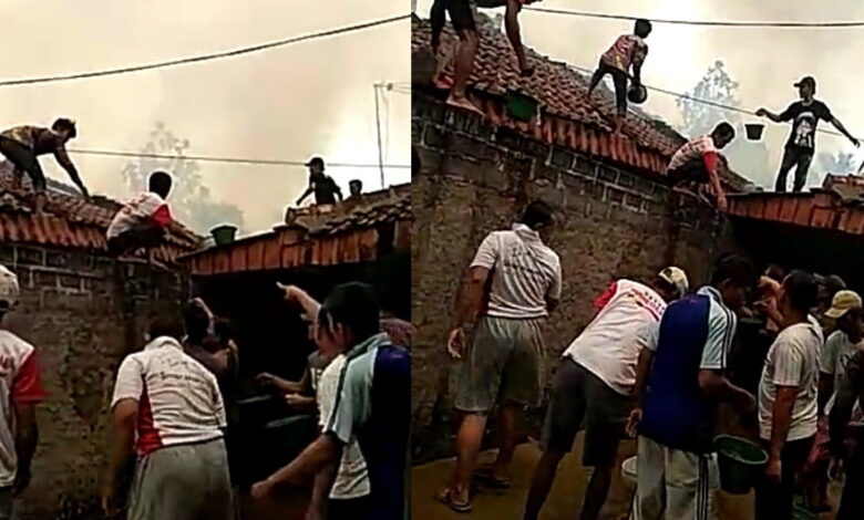 Warga setempat berbondong-bondong berupaya memadamkan kobaran api dengan alat seadanya. Sayang, kobaran api tetap menyala sedangkan penyebab api belum bisa dipastikan dari mana asalnya.