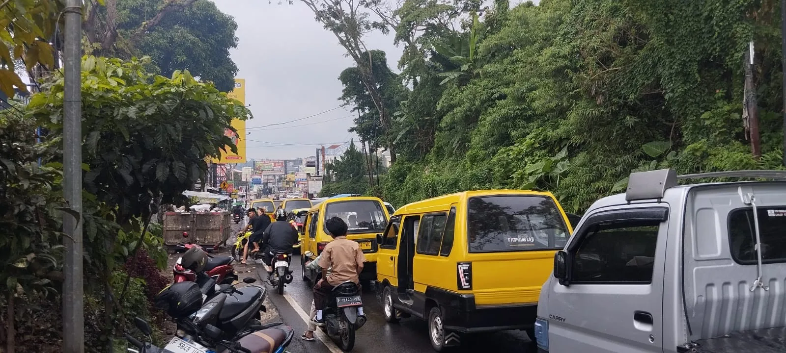 Pantauan di lapangan, Jumat (28/2/2025), pukul 14.15 WIB, kemacetan terjadi di depan Kantor Desa Sindanglaya menuju Pasar Cipanas. Kondisi serupa juga terlihat dari kantor pos Cipanas ke arah Pacet.