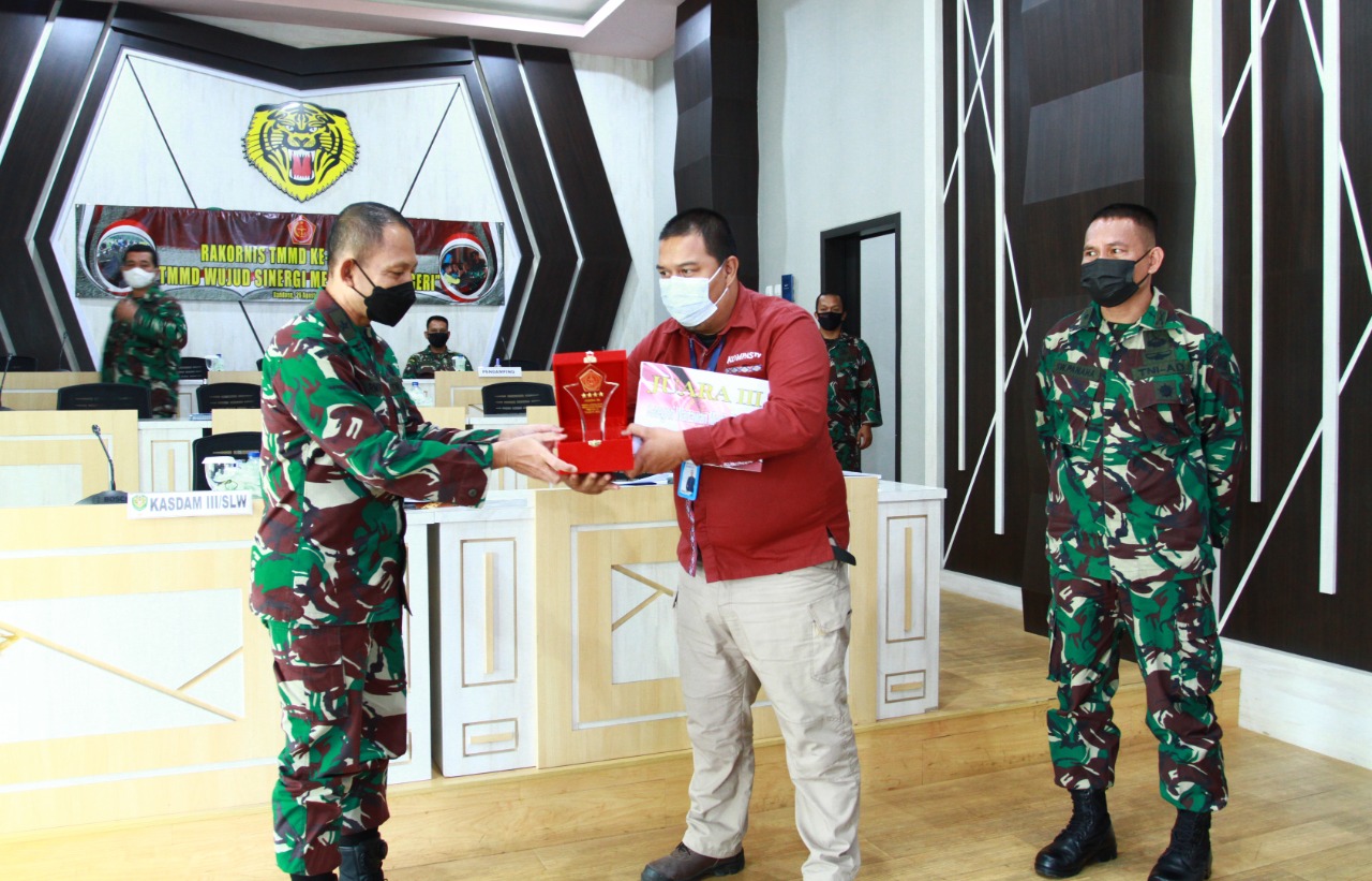 Hadiah diserahkan langsung Kepala Staf Kodam III Siliwangi, Brigjen TNI Darmono Susastro, mewakili Panglima TNI, di ruang Puskodalopsdam III Siliwangi, usai pelaksanaan Rakornis TMMD ke 112 secara virtual, Kamis (26/8/2021).