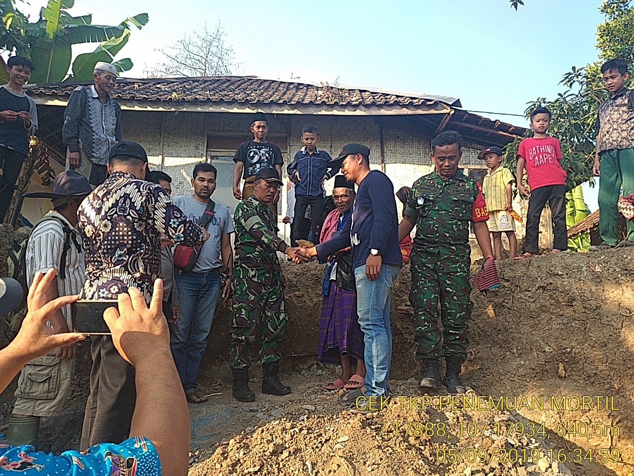 CIANJURUPDATE.COM, Pagelaran – Warga Kampung Babakan Petir, RT 3/RW 4, Desa Buniwangi, Kecamatan Pagelaran, Kabupaten Cianjur, dikejutkan dengan adanya penemuan mortir, baru-baru ini. Aparat TNI dan Polri pun mengamankan barang tersebut dari lokasi.