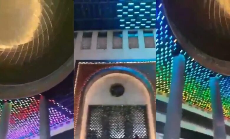 Dari caption video yang beredar, sebagian menyayangkan lampu tersebut yang justru lebih mirip lampu disko di diskotek dibanding di masjid.