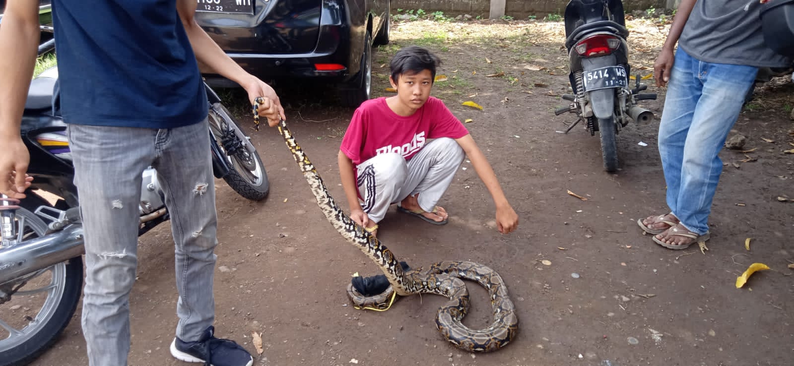 “Kelihatannya di selokan, ular itu mau nyebrang langsung ditangkap warga dengan alat bambu dan tali rapia. Ukurannya 3 meter, untuk berat belum ditimbang,” ungkap dia.