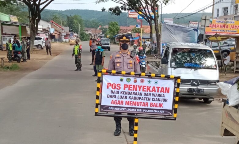 CIANJURUPDATE.COM, Cikalongkulon – Polsek Cikalongkulon bersama dengan unsur lainnya melakukan Operasi Ketupat Lodaya untuk penyekatan pemudik di Jalur Cianjur – Jonggol, Kamis, (6/5/2021).