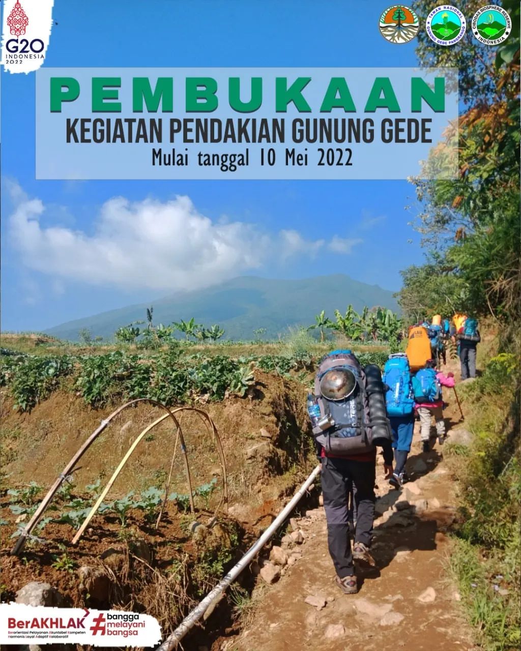 Dibukanya kembali pendakian Gunung Gede Pangrango, Berdasarkan Surat Edaran Kepala Balai Besar TNGGP Nomor: SE.08/BBTNGGP/Tek 2/04/2022 tanggal 11 April 2022.