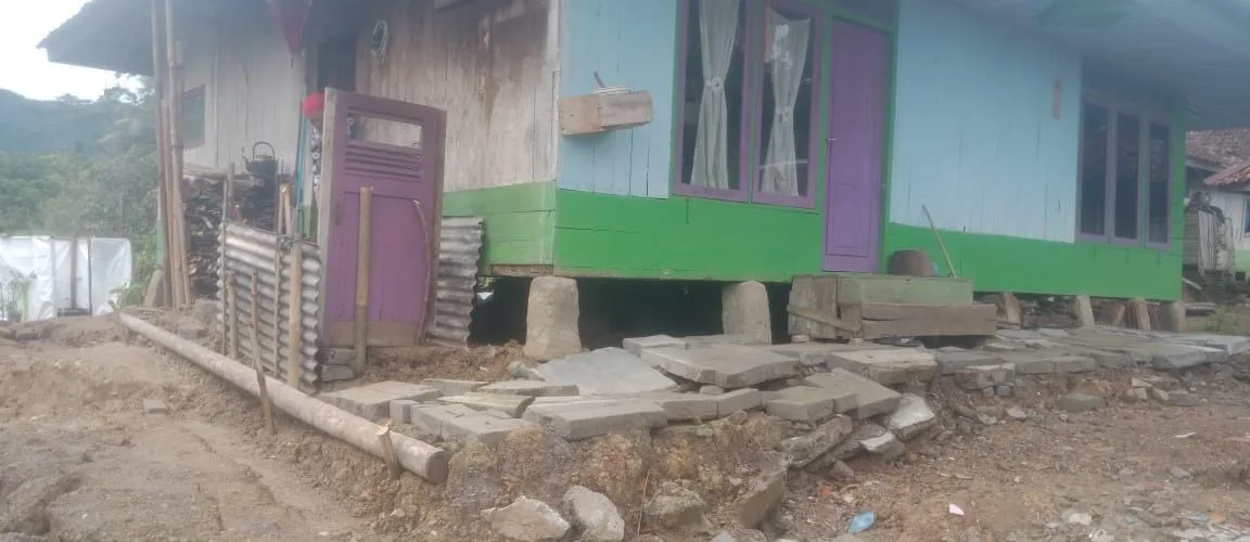 “Total rumah terdampak sekitar 85 unit di tiga kampung. Jalan juga mengalami kerusakan dan longsor,” tuturnya.