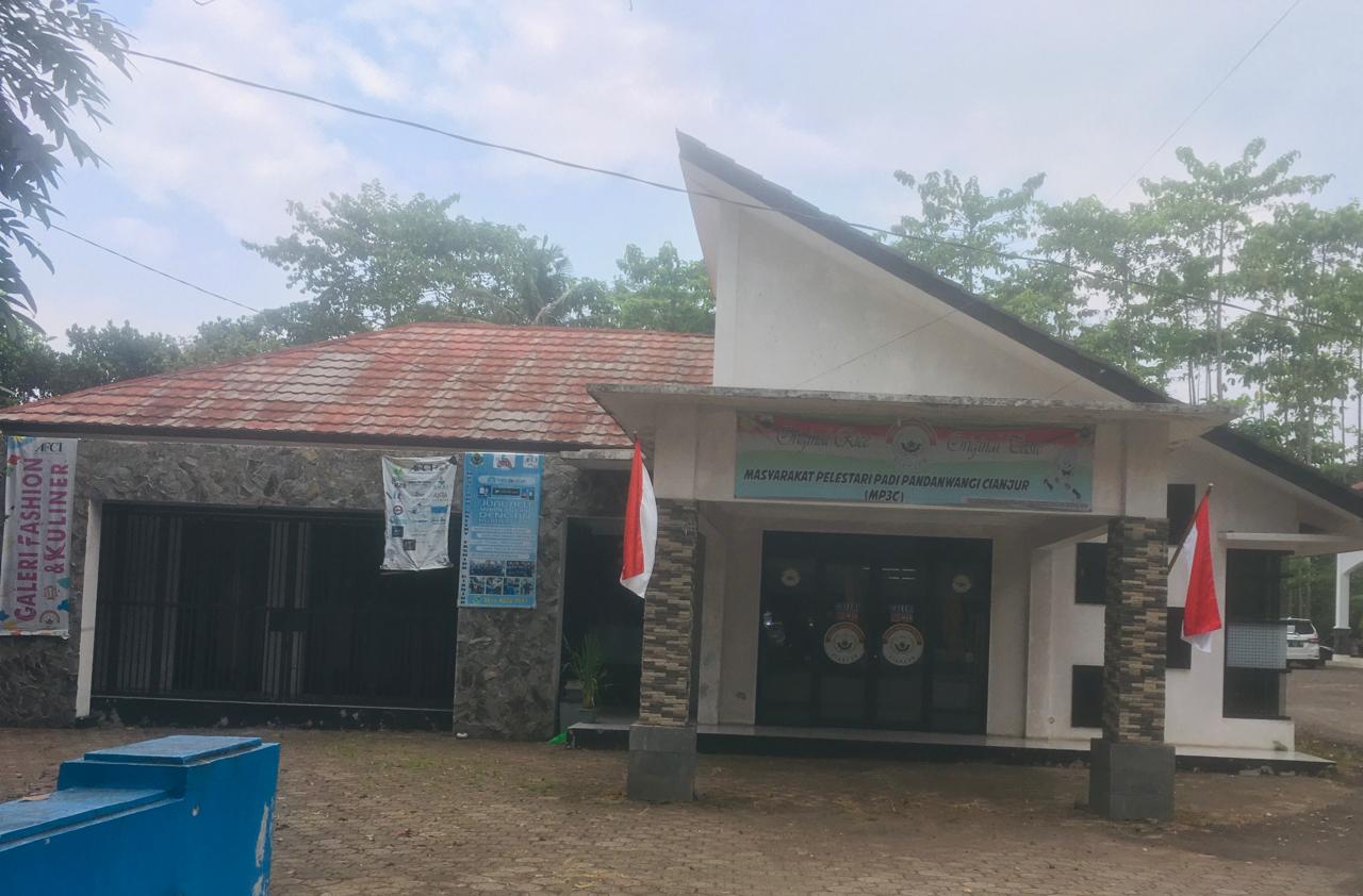 Di depan gedung itu terdapat nama ‘Masyarakat Pelestari Padi Pandanwangi Cianjur (MP3C)’ namun tidak terdapat aktifitas apapun yang terlihat. Hanya ada dua bendera merah putih yang terpasang sejak peringatan Hari Kemerdekaan Indonesia.