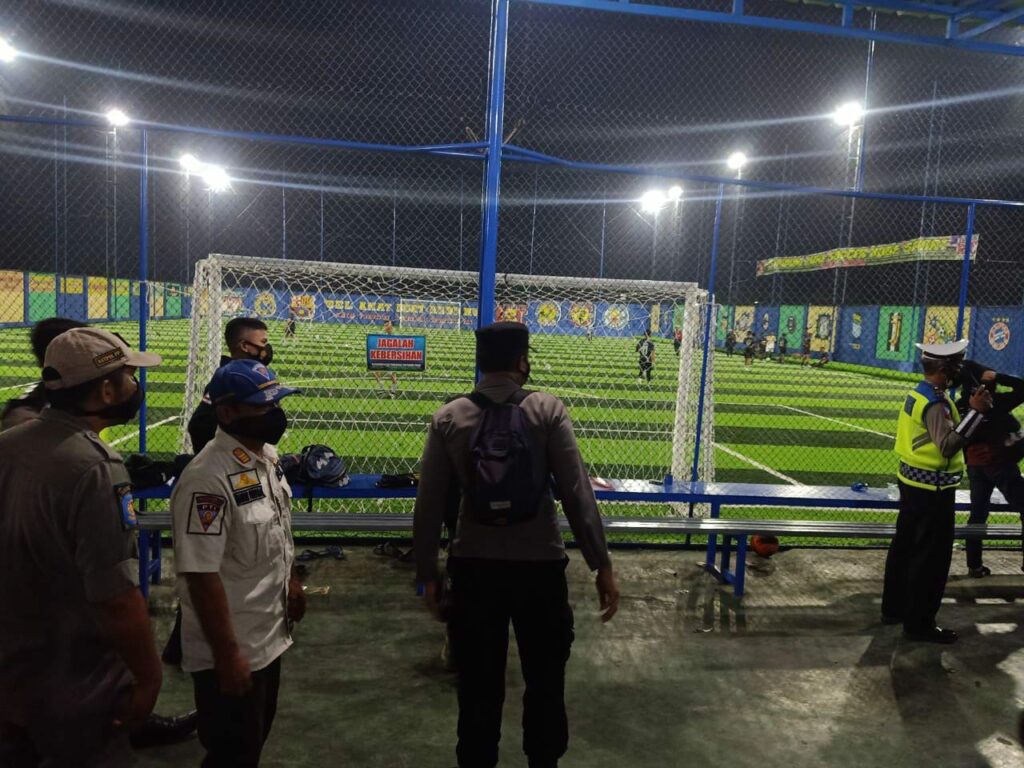 BUBAR: Petugas gabungan membubarkan sarana olahraga futsal di daerah Cikaret-Cianjur pada Rabu malam. (Foto: Istimewa)