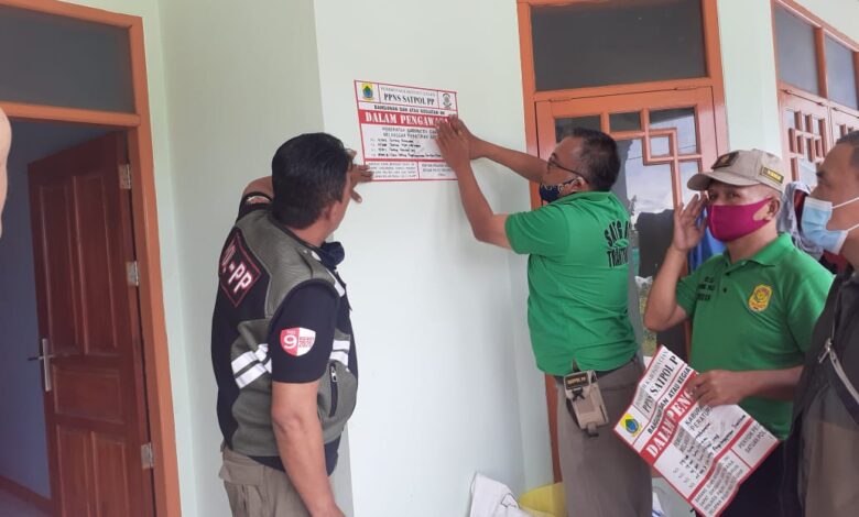 Satpol PP Cianjur Pasangkan Stiker “Dalam Pengawasan” Kepada Perusahaan Walet di Pacet