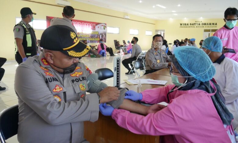 Kapolres Cianjur, AKBP Juang Andi Priyanto, menuturkan, kegiatan itu dilaksanakan berdasarkan imbuan Kapolri untuk mengisi stok darah PMI dalam menghadapi Wabah Covid 19 Senin (13/04/2020). Dia menegaskan, seluruh anggota langsung dilakukan pegecekan. Siapa saja yang dinyatakan layak maka bisa mendonorkan darah secara langsung.
