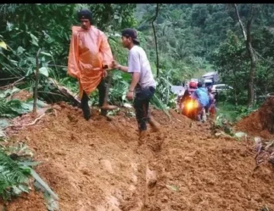 Longsor di Naringgul Tutup Jalan Penghubung Cianjur – Bandung