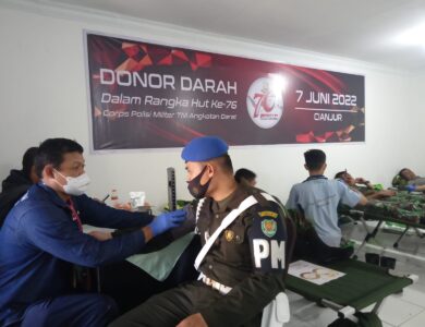 Polisi Militer TNI Angkatan Darat (POMAD), menggelar kegiatan donor darah di kantor Pomdam Cianjur pada Selasa (7/6/2022).