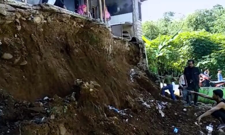 Menurut Solihin, pemilik rumah yang tergerus longsor mengatakan peristiwa ini terjadi saat hujan mengguyur cukup lama. Tembok Penahan Tanah (TPT) di depan rumahnya tak kuat menahan air
